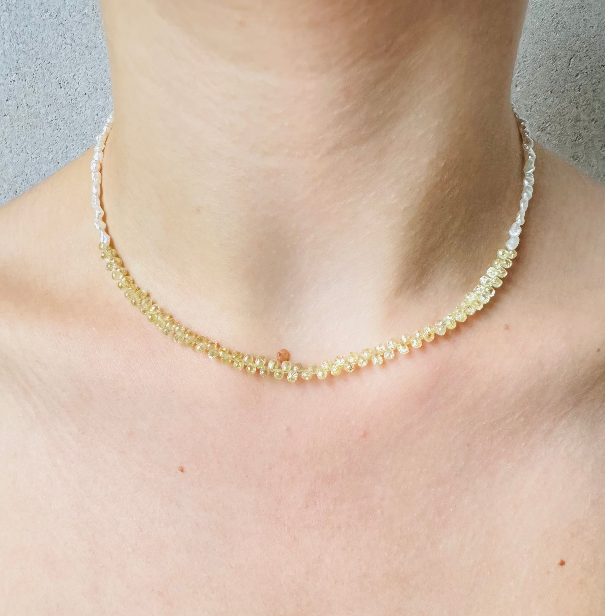 Akoya Keshi Pearls with Yellow Diamond Briolettes