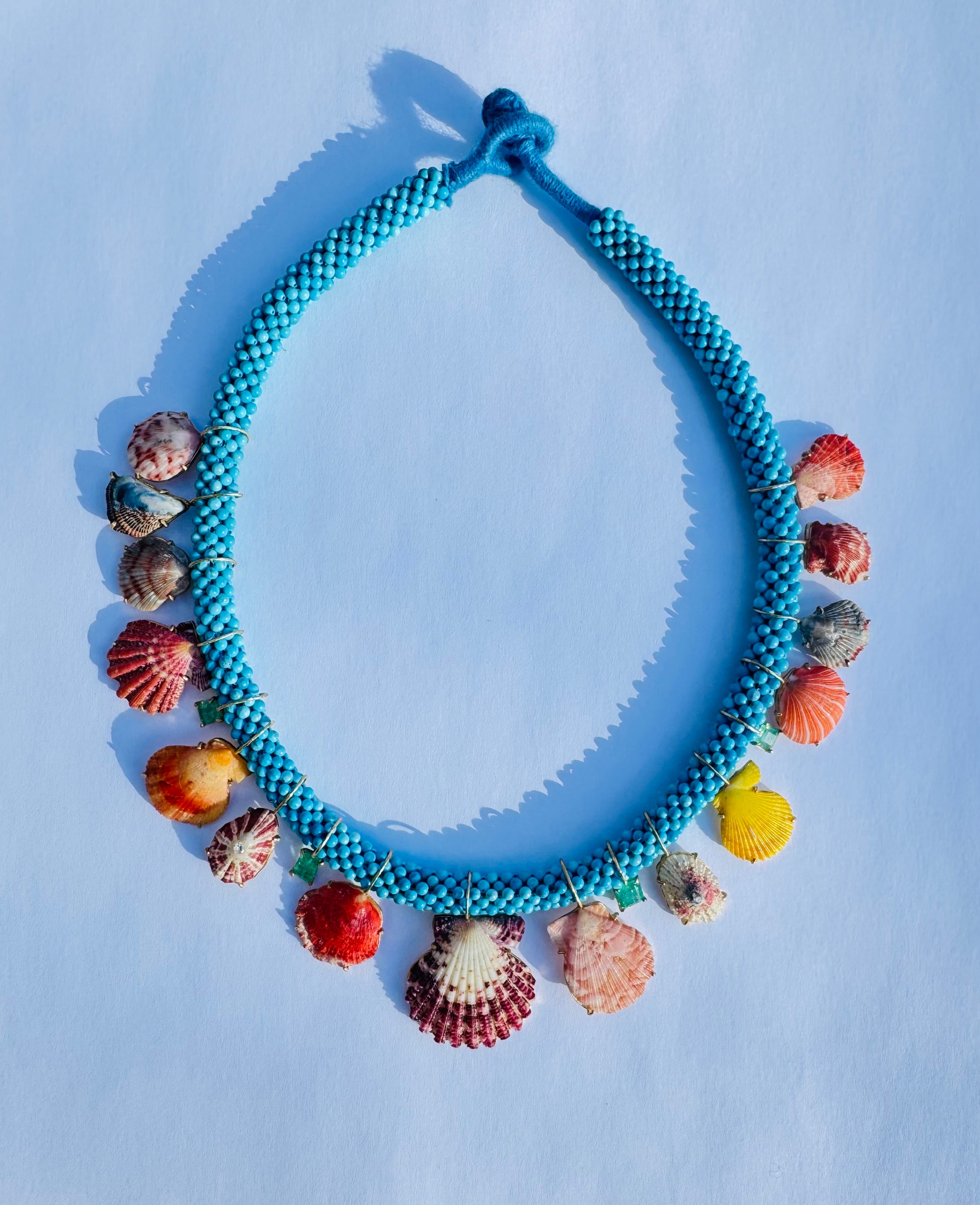 Amazonite, Shell, Diamond and Emeralds set in 18k Gold.