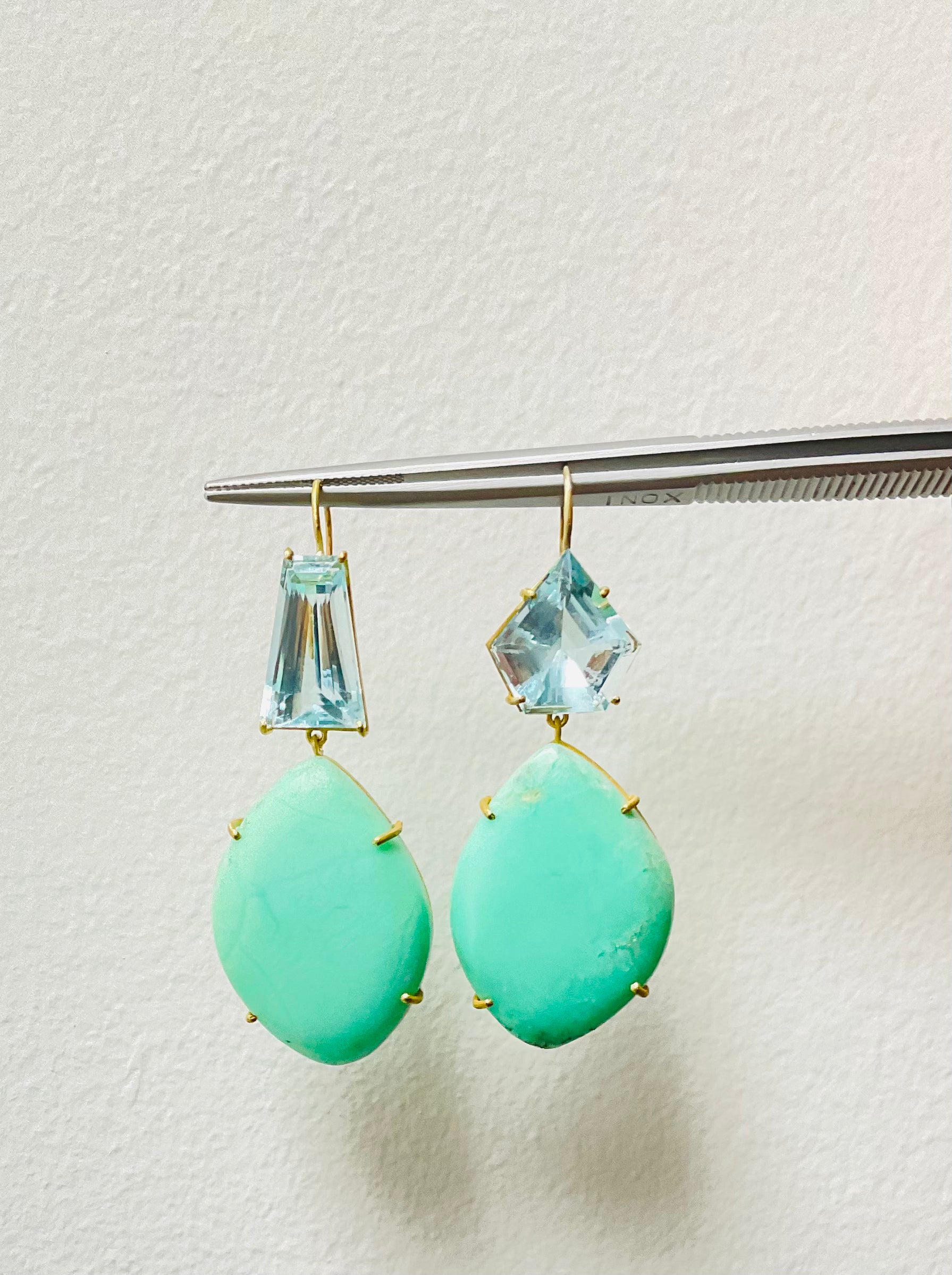 Aquamarine and Chrysoprase Earrings set in 18k gold.