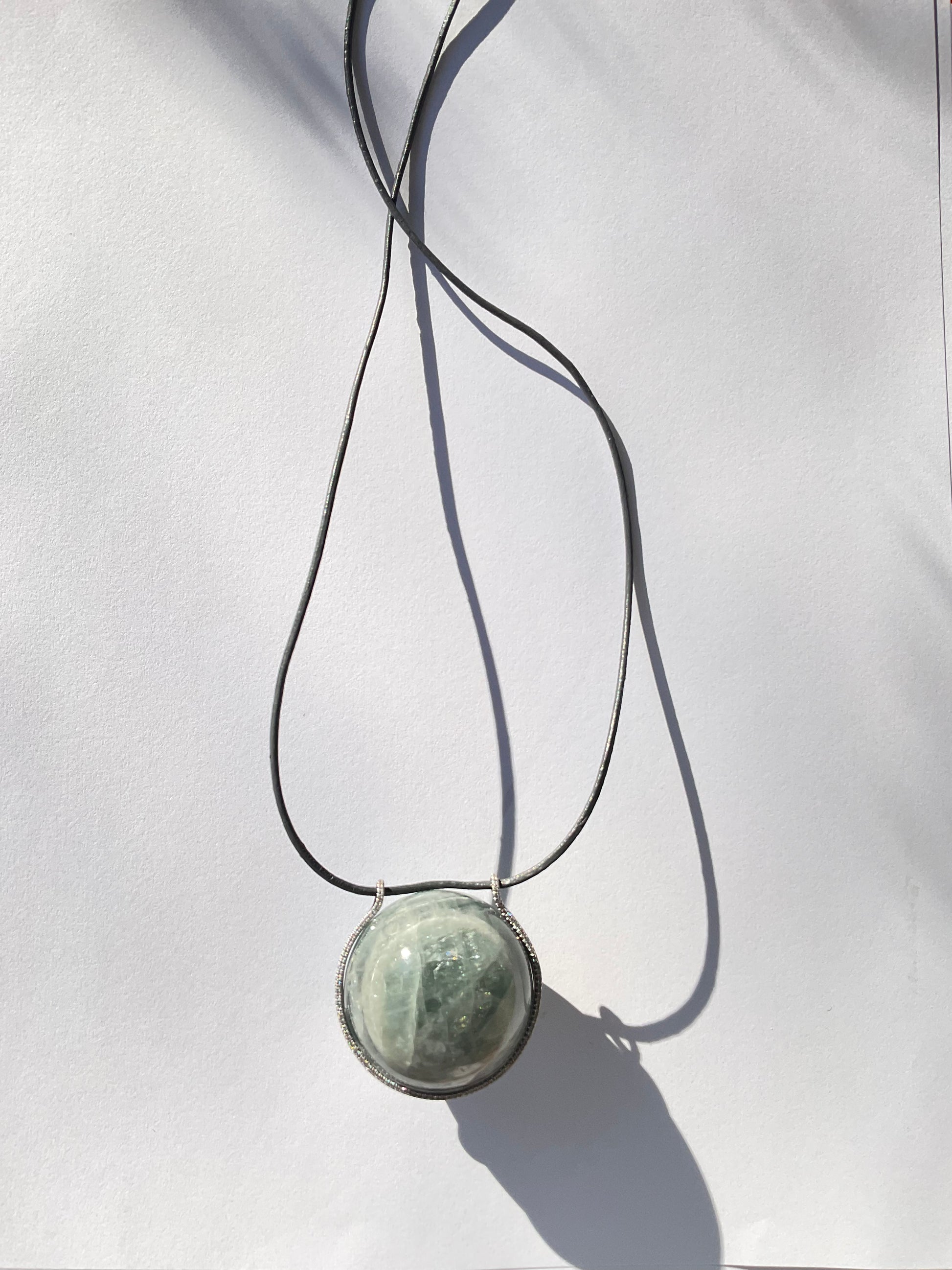 Aquamarine Healing Sphere set in 18k white gold with Diamonds.