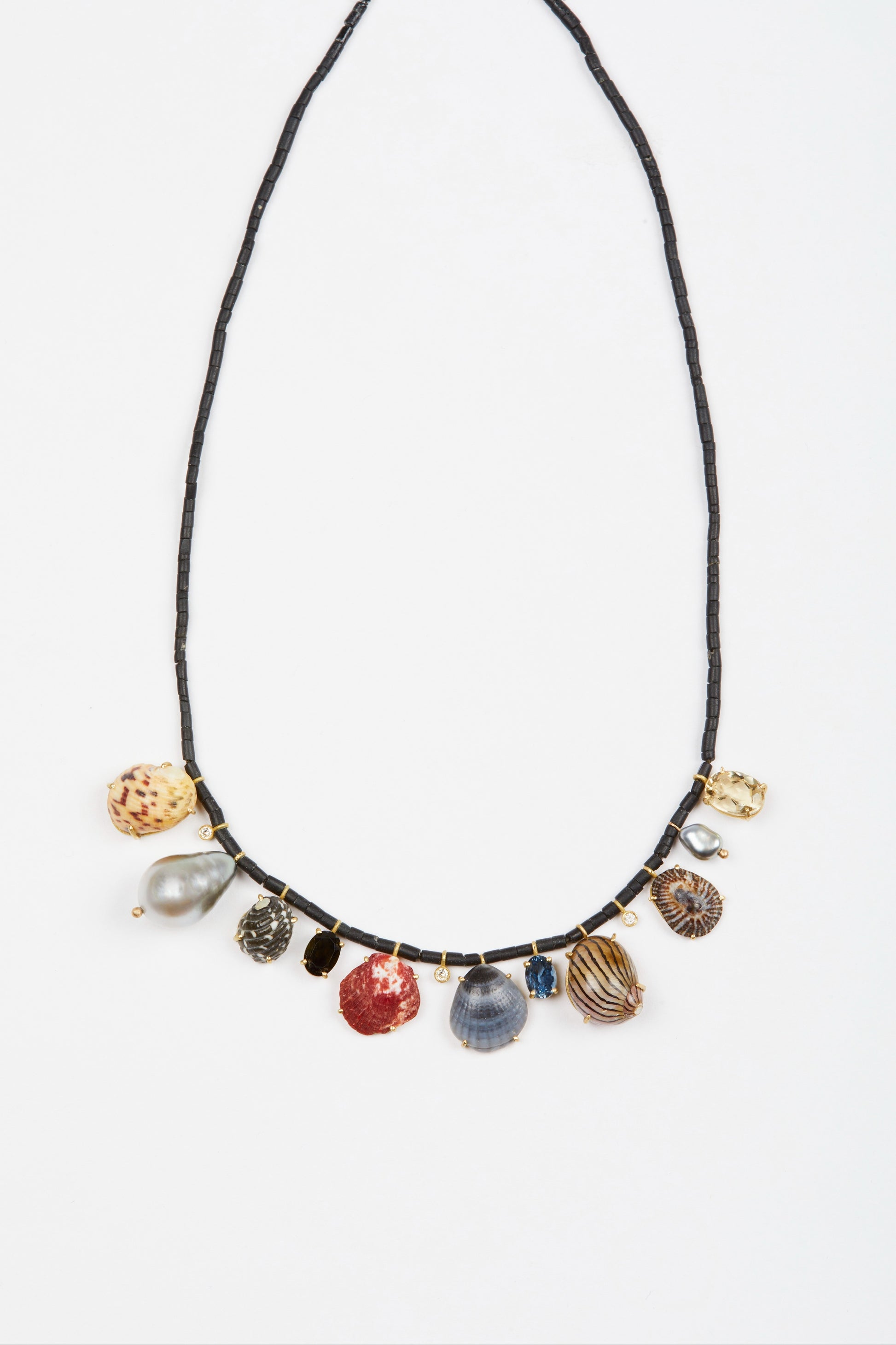 Black Jade Beads with Shells, Diamonds, Tourmaline and Tahitian Pearl