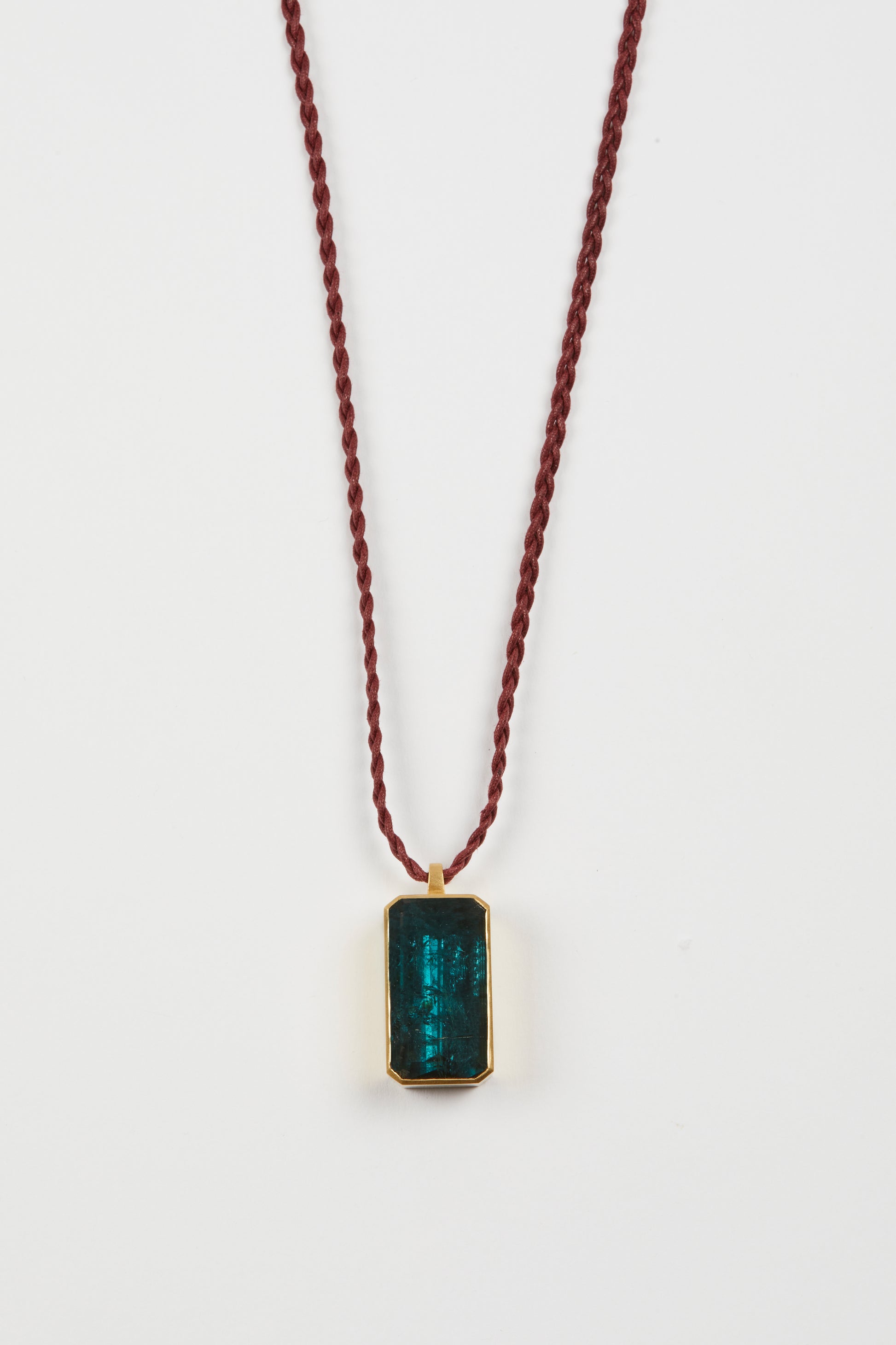 Burgundy Braided Cord with Blue Tourmaline Pendant