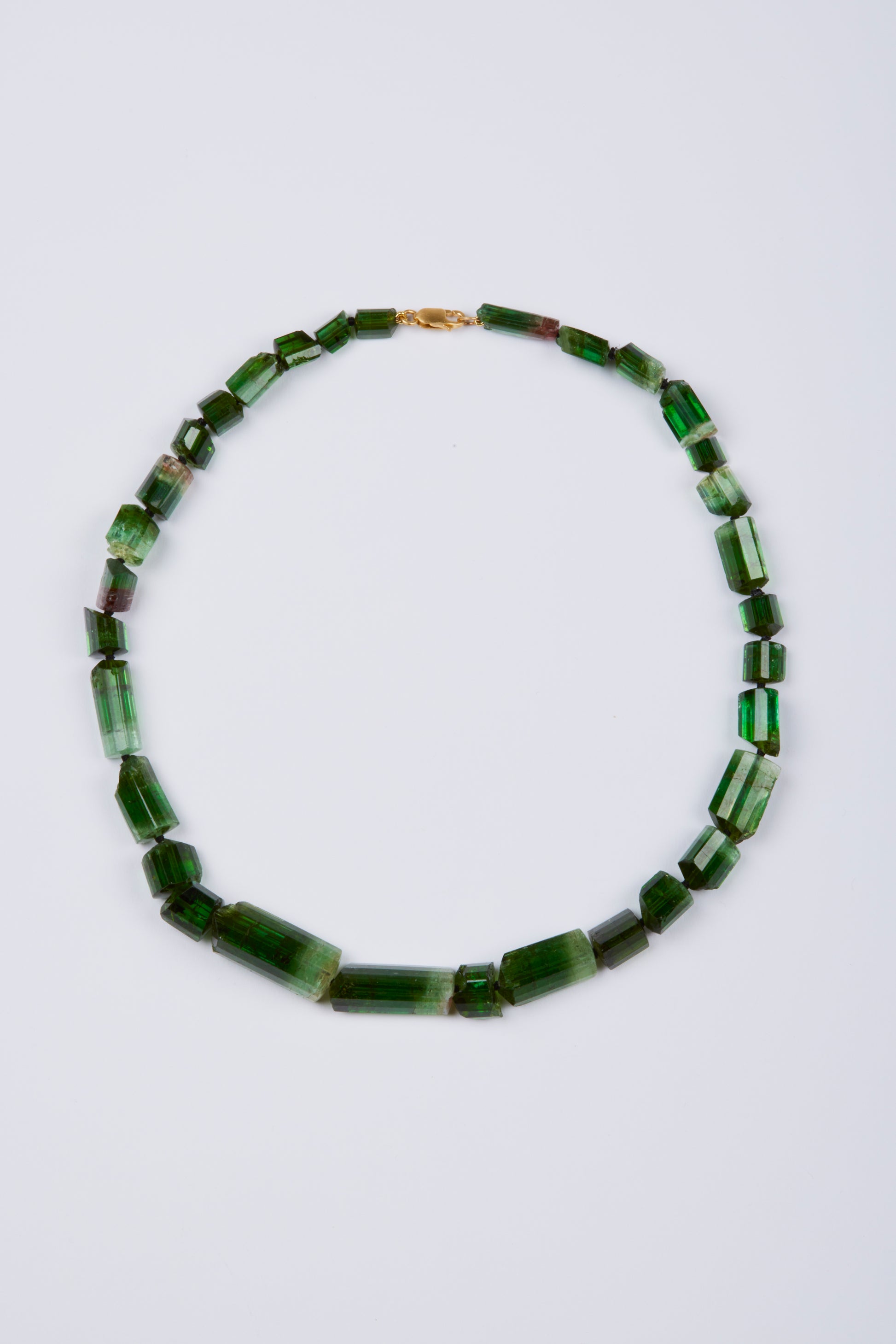Green Tourmaline Beads and Gold Clasp