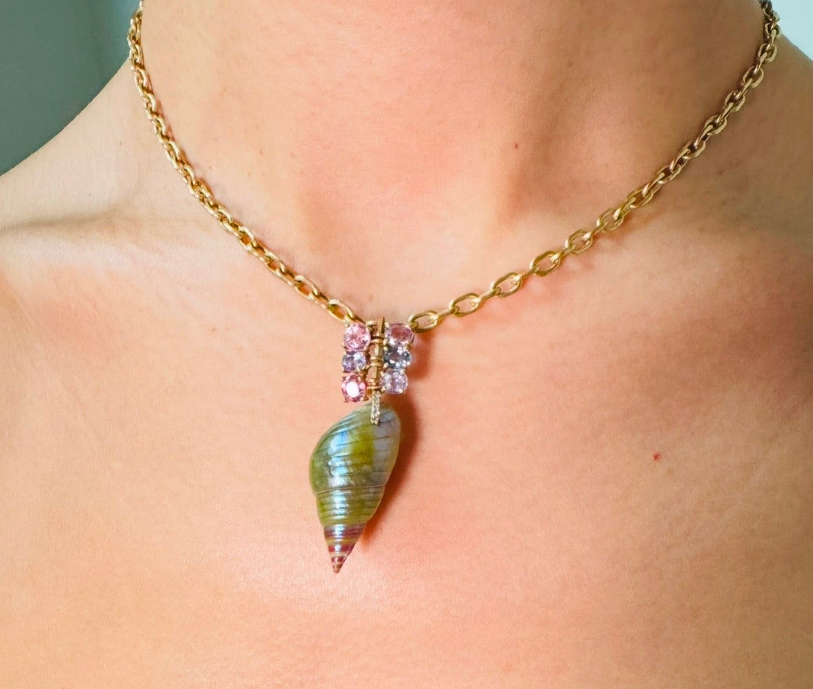 Maireener Shell Pendant with Spinel and Diamonds set in 18k gold.