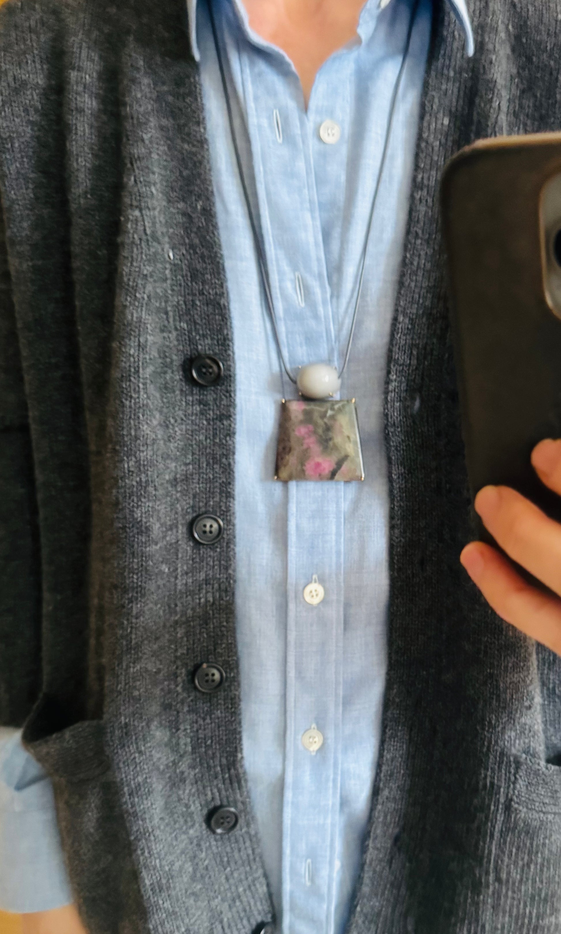 Moonstone and Ruby in Marble Necklace