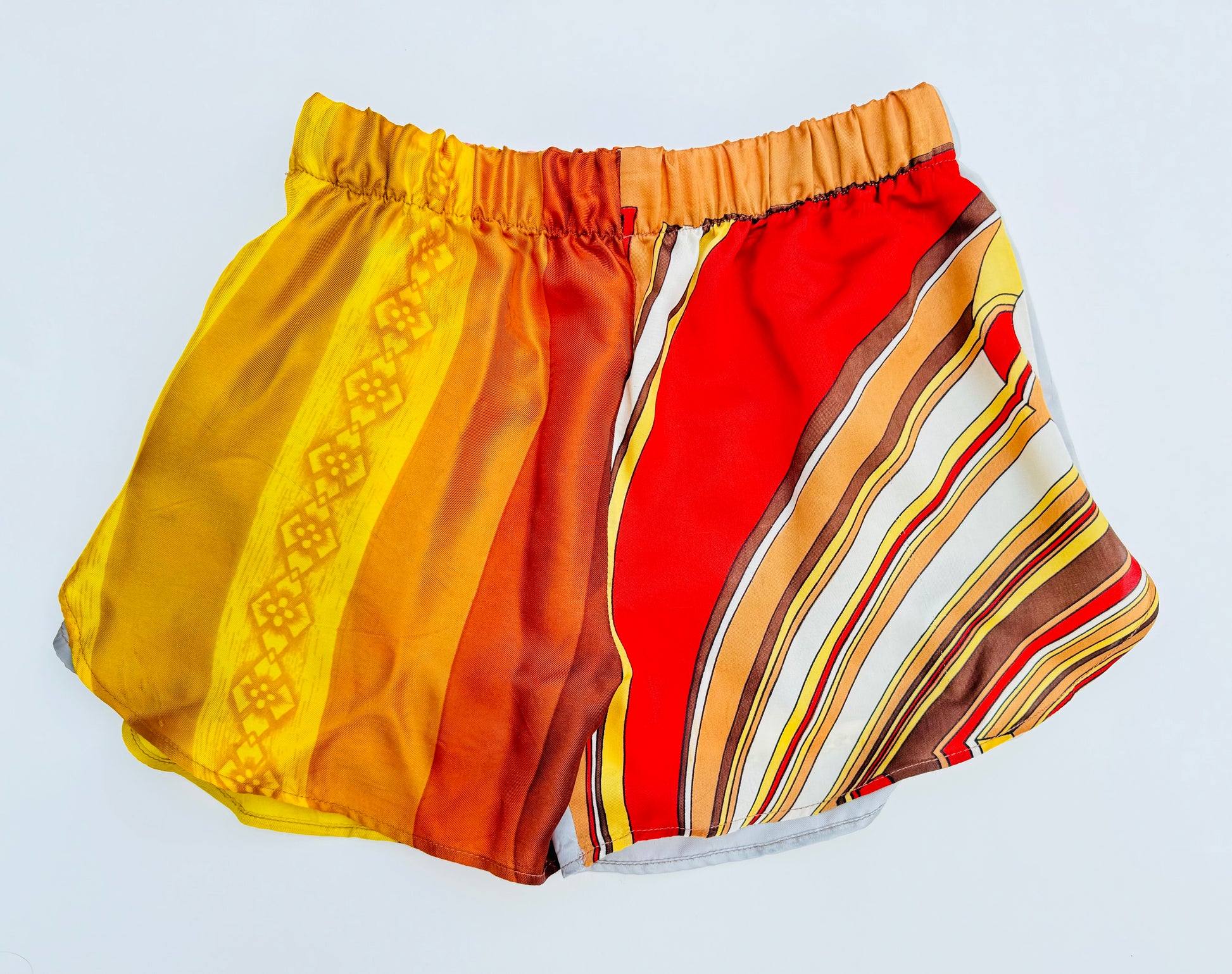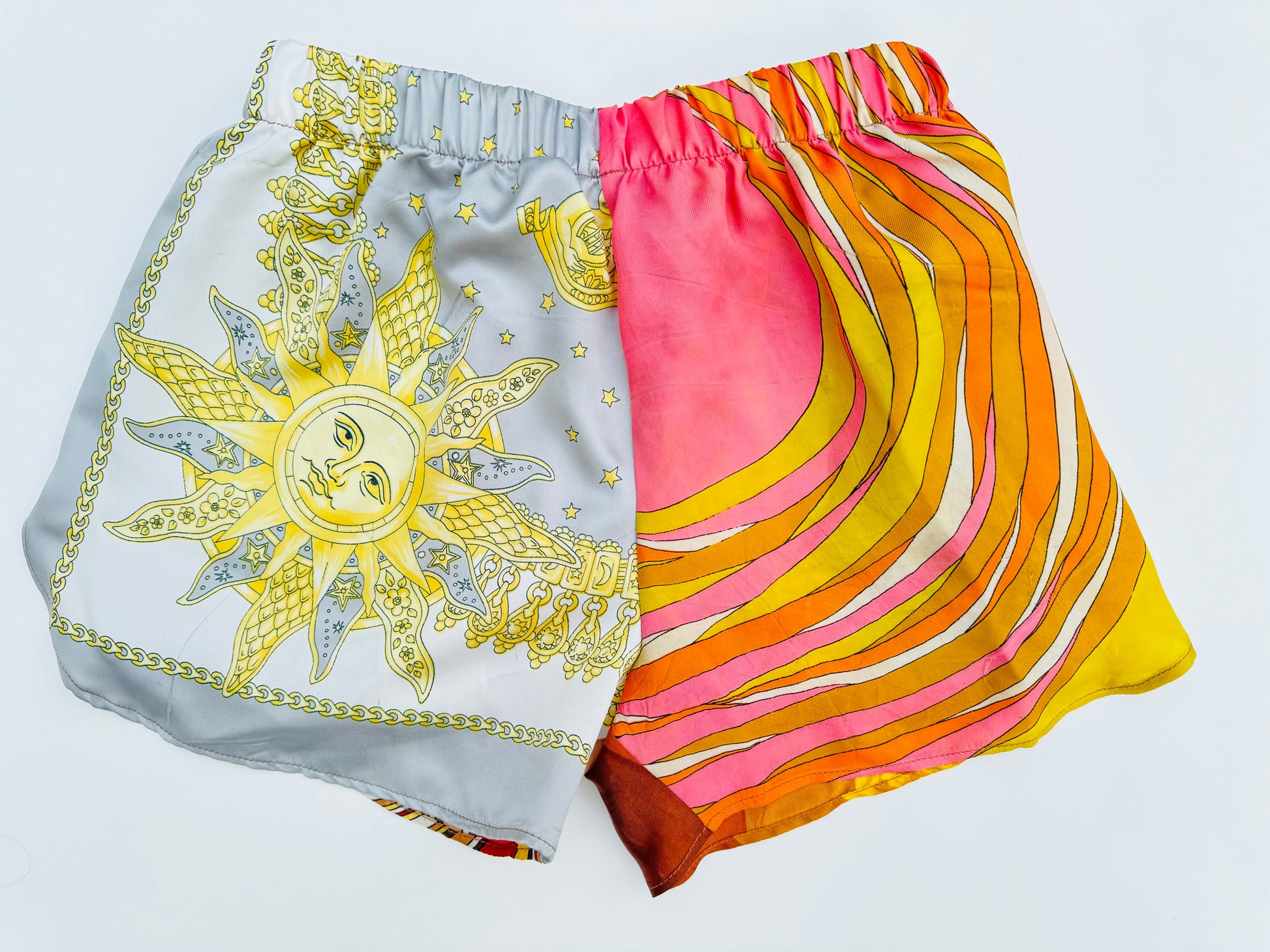 Made with vintage scarves, these shorts are size s/m. This style has pockets.