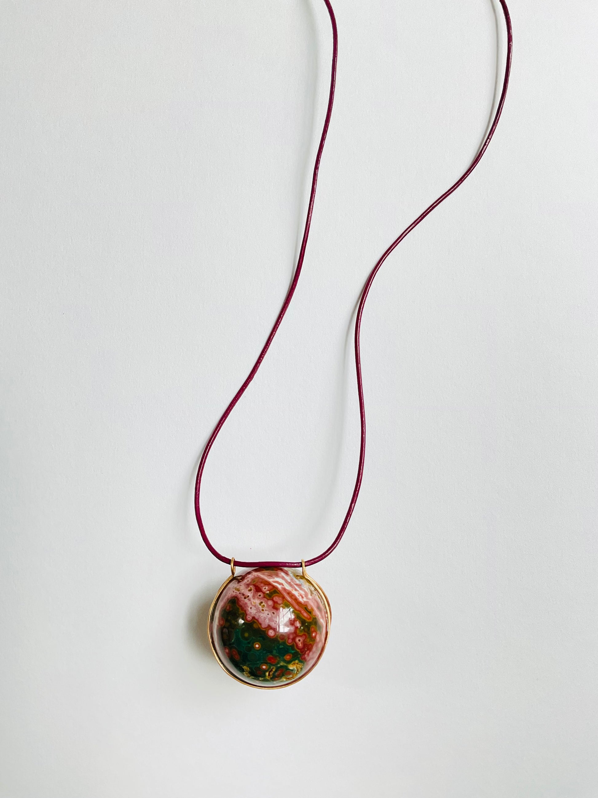 Orbicular Ocean Jasper Sphere set in 18k gold.