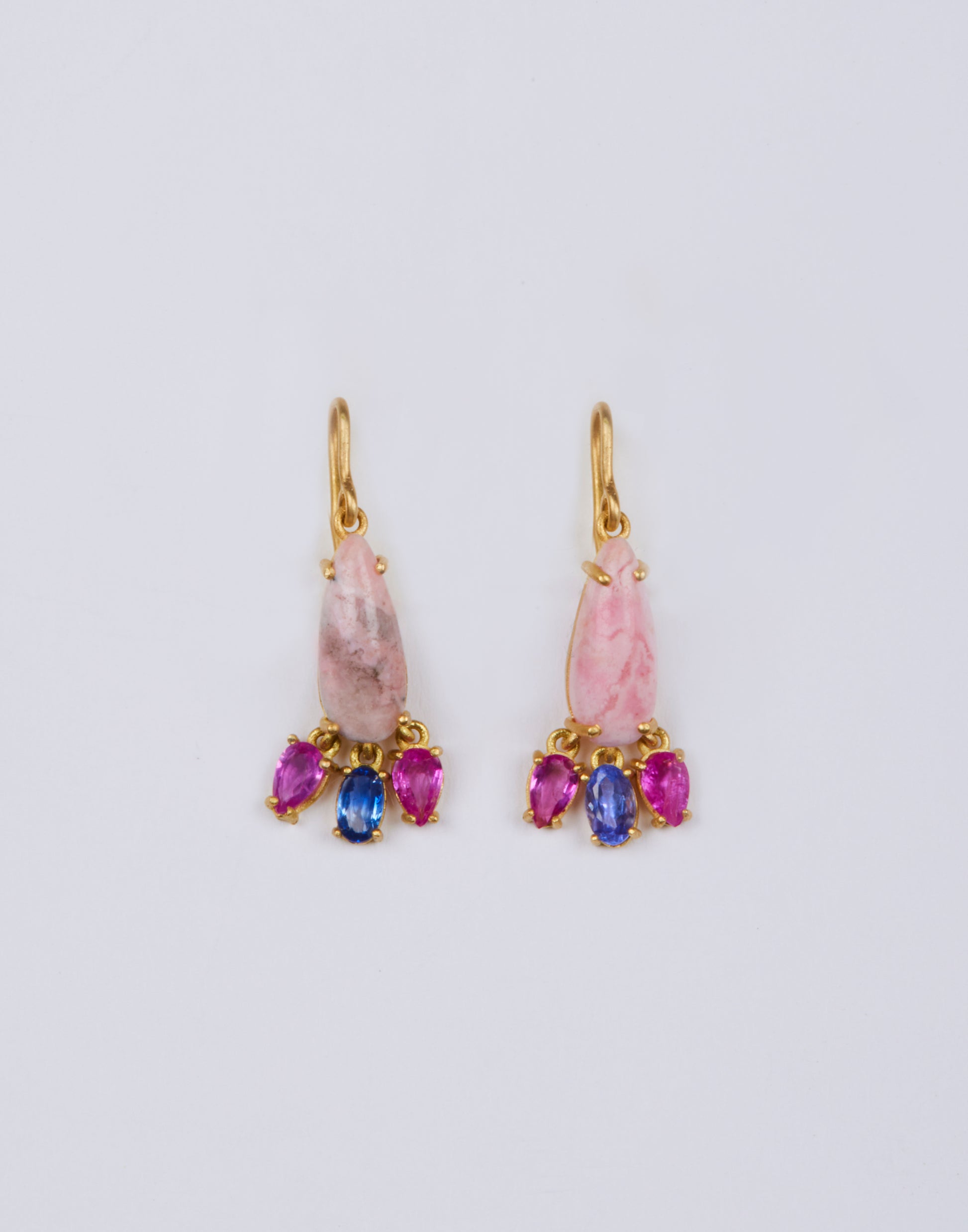 Pink Opal Earrings with Tourmaline and Tanzanite Dangle