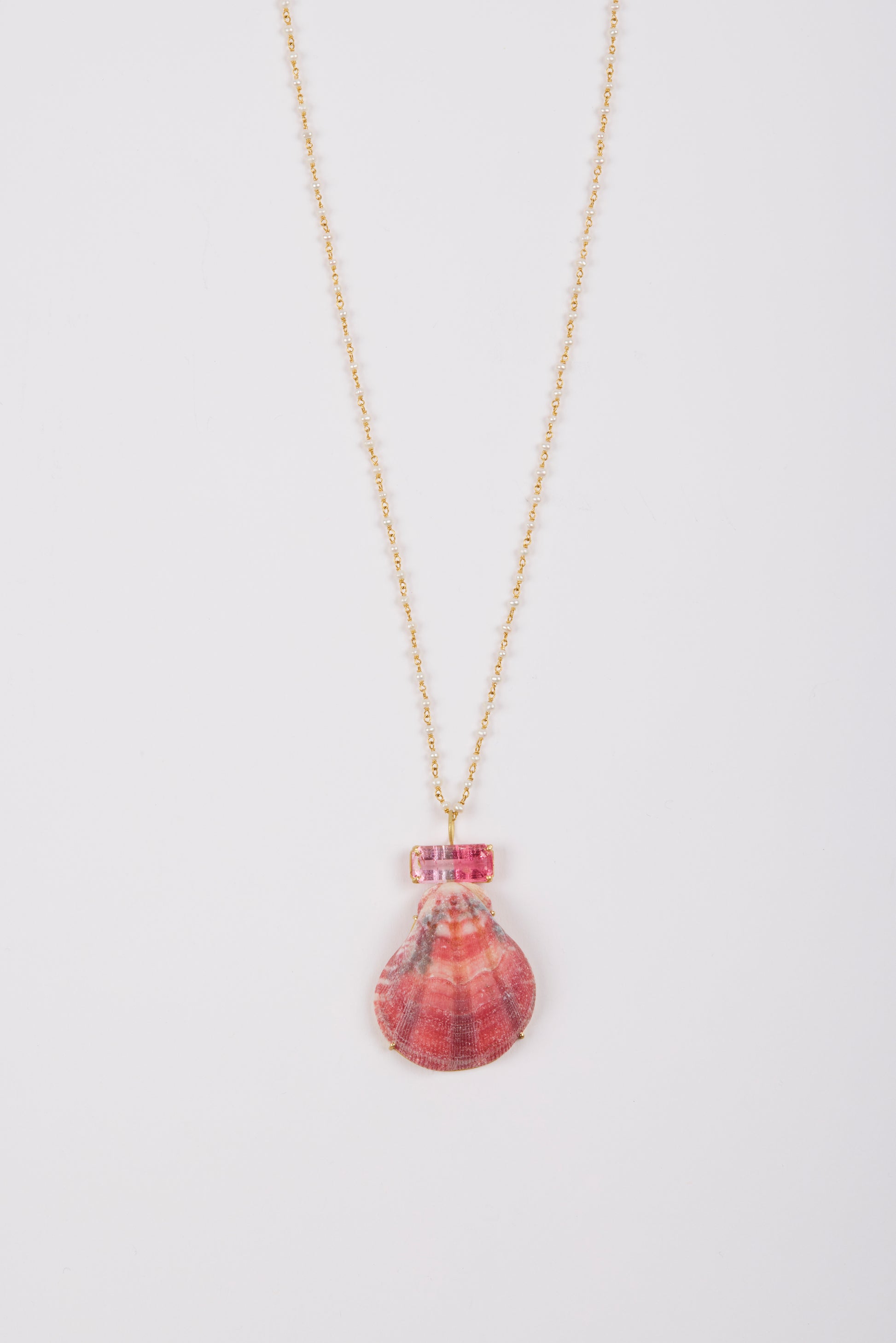 Rare Shell and Bi Colour Tourmaline on Pearl Chain