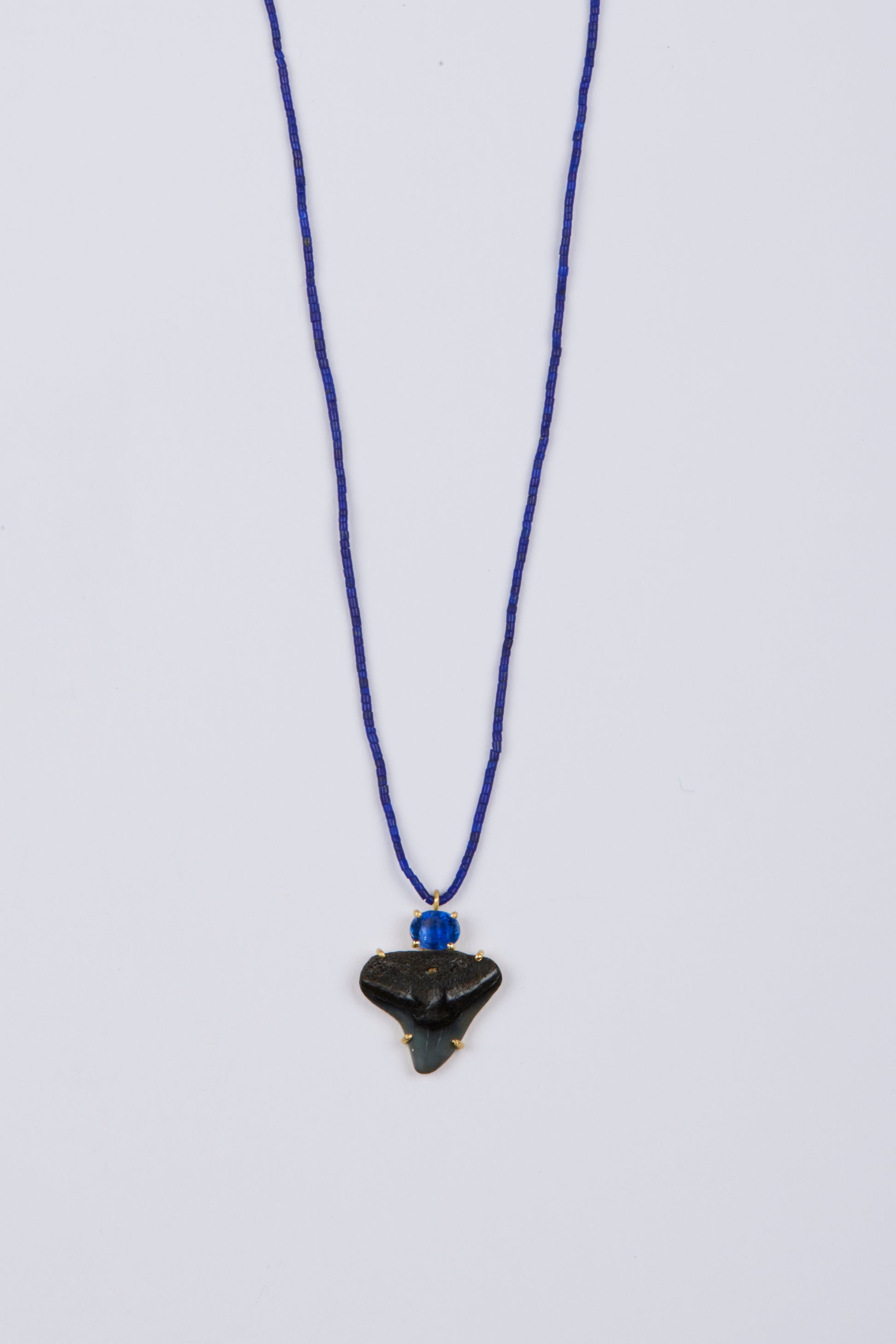 Tiny Lapis Beads with Bi Color Sapphire and Shark Tooth