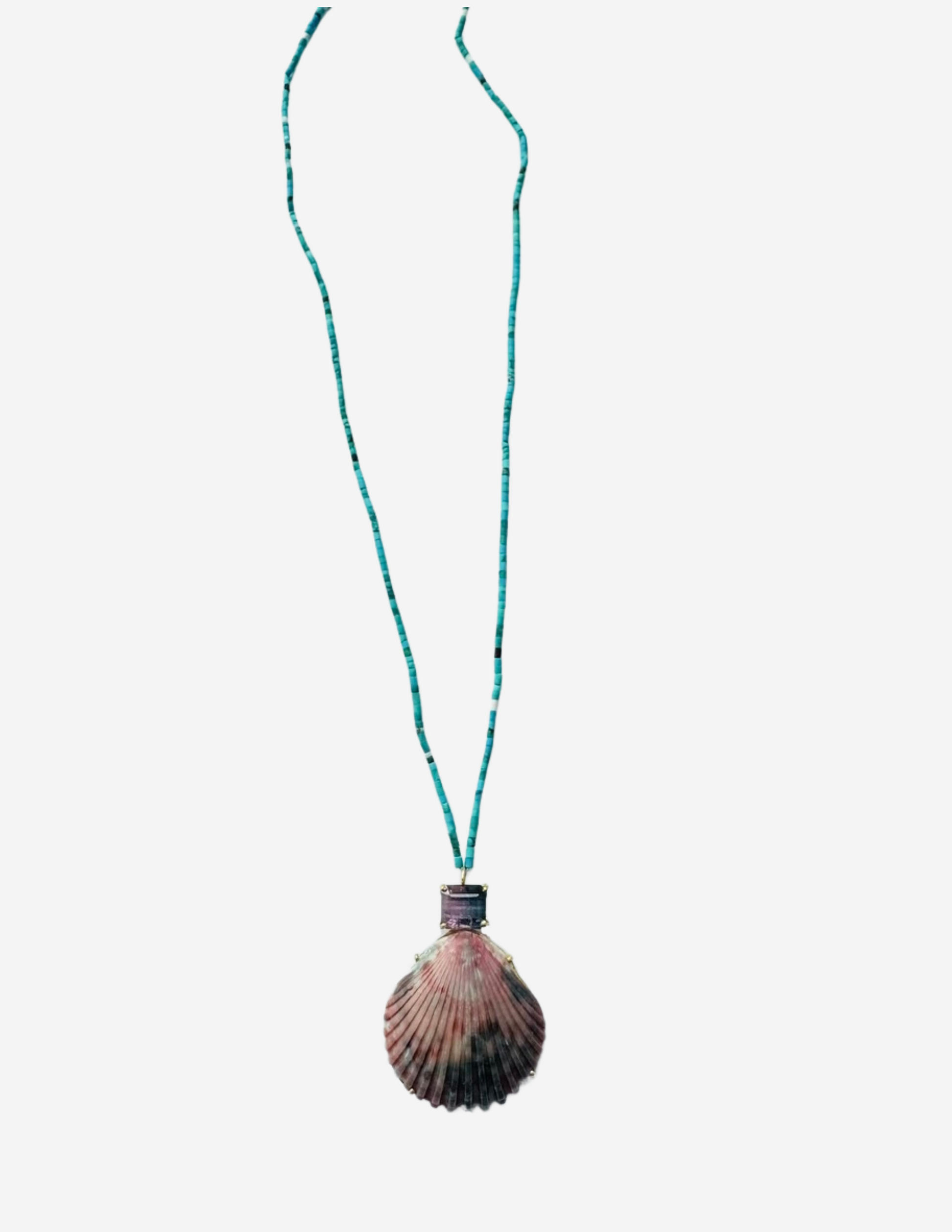 Tiny Turquoise Beads with Bi Color Tourmaline and Shell