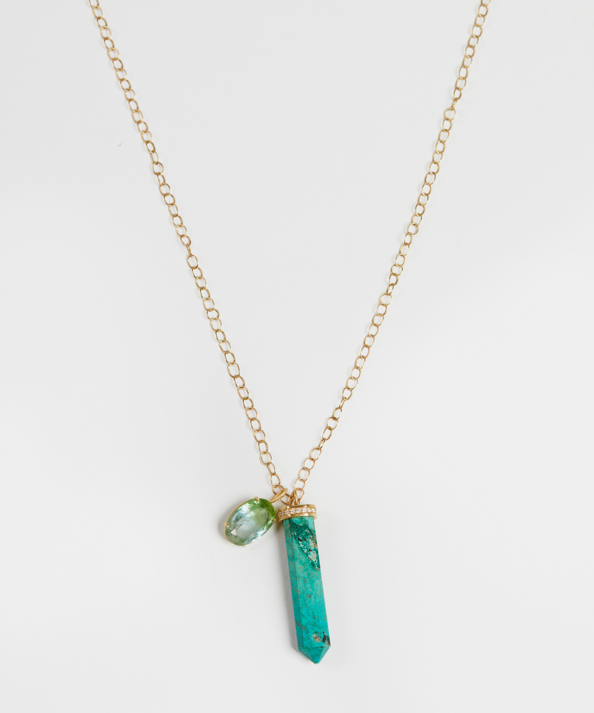 Turquoise pendant with diamonds and Bi Color Tourmaline