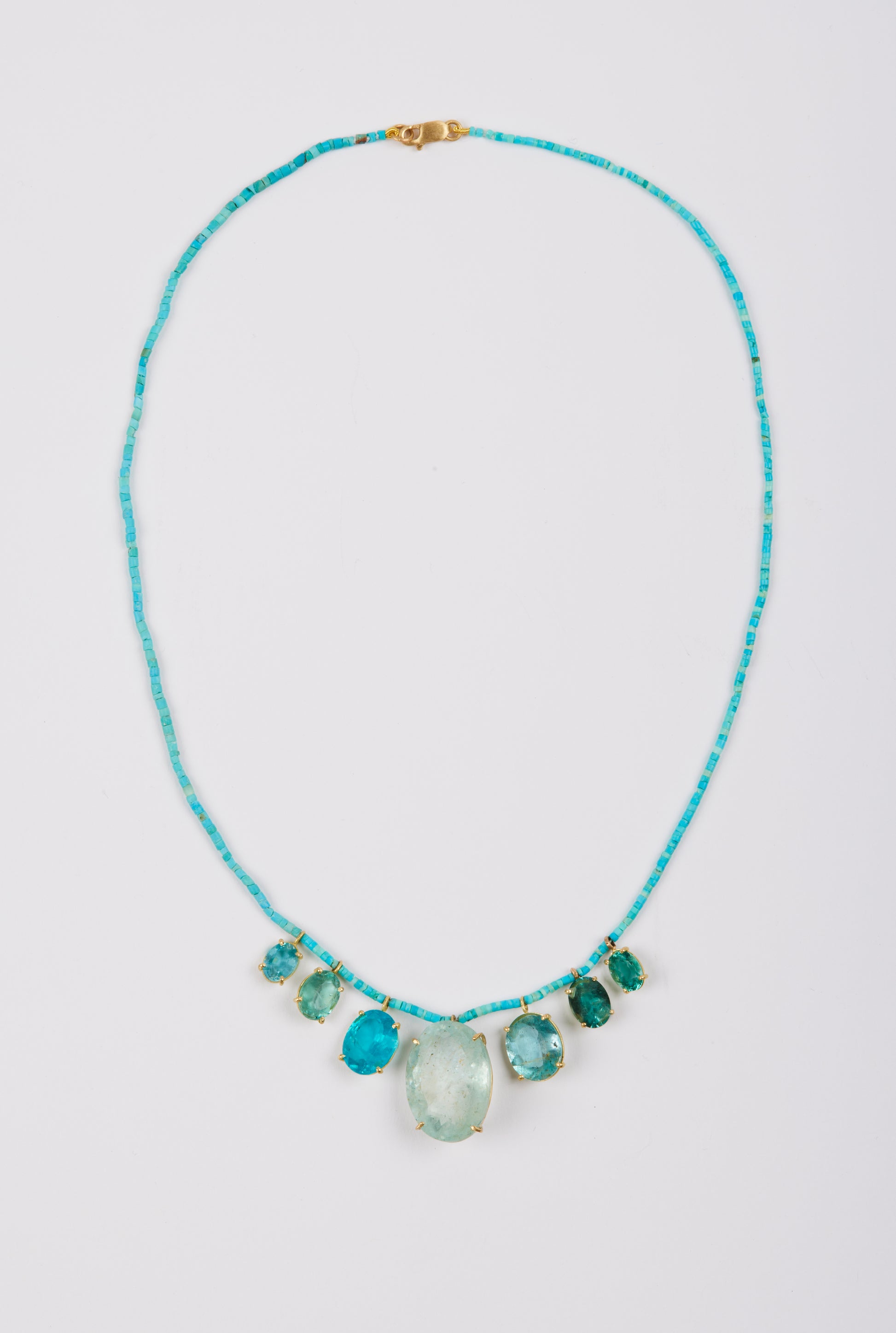 Turquoise Beads with Fluorite, Apatite, Tourmaline and Aquamarines