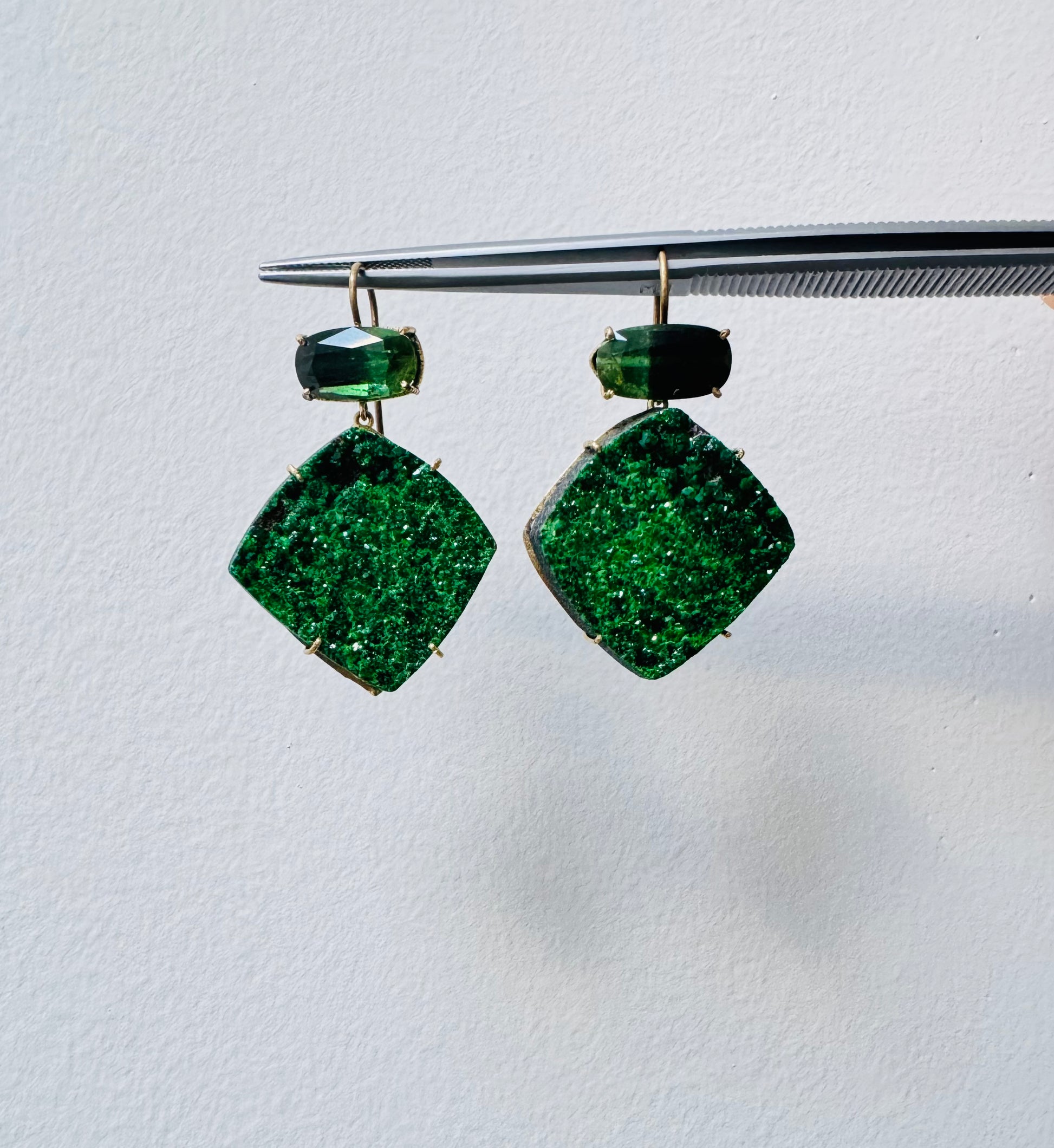 Uvarovites and Bi Color Tourmaline Earrings set in 18k Gold.