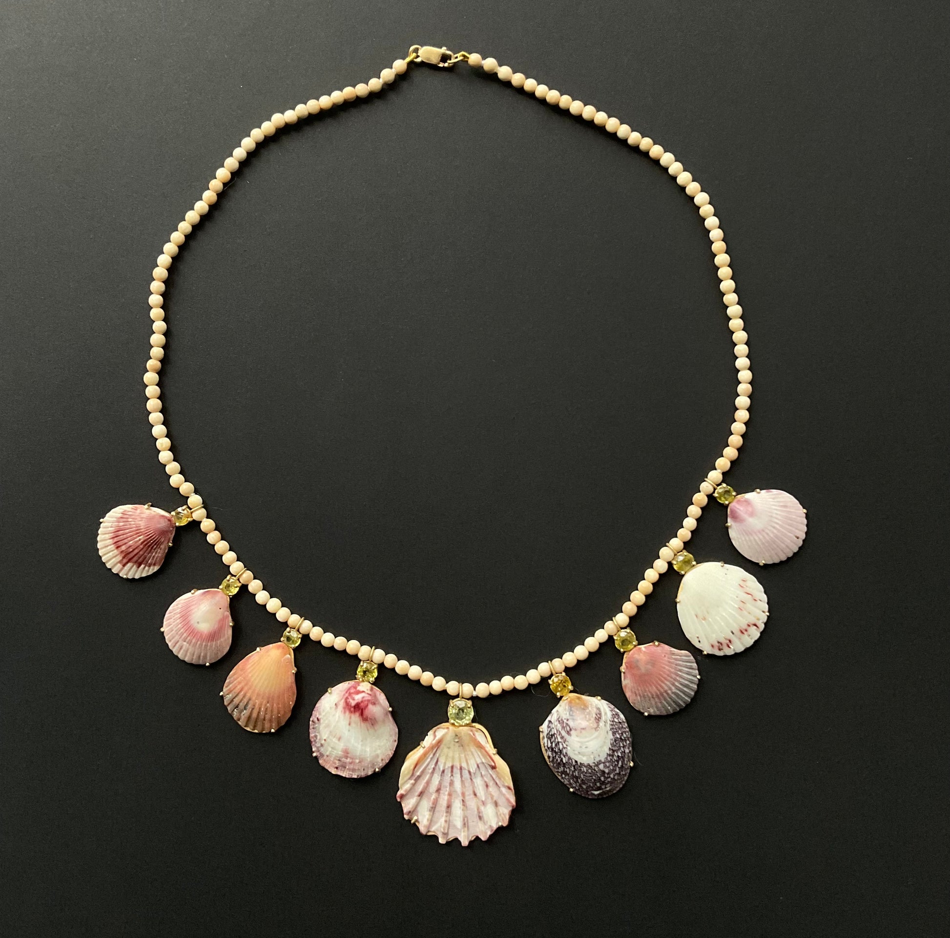 Wooly Mammoth Beads with Sphene and Shells set in 18k gold.