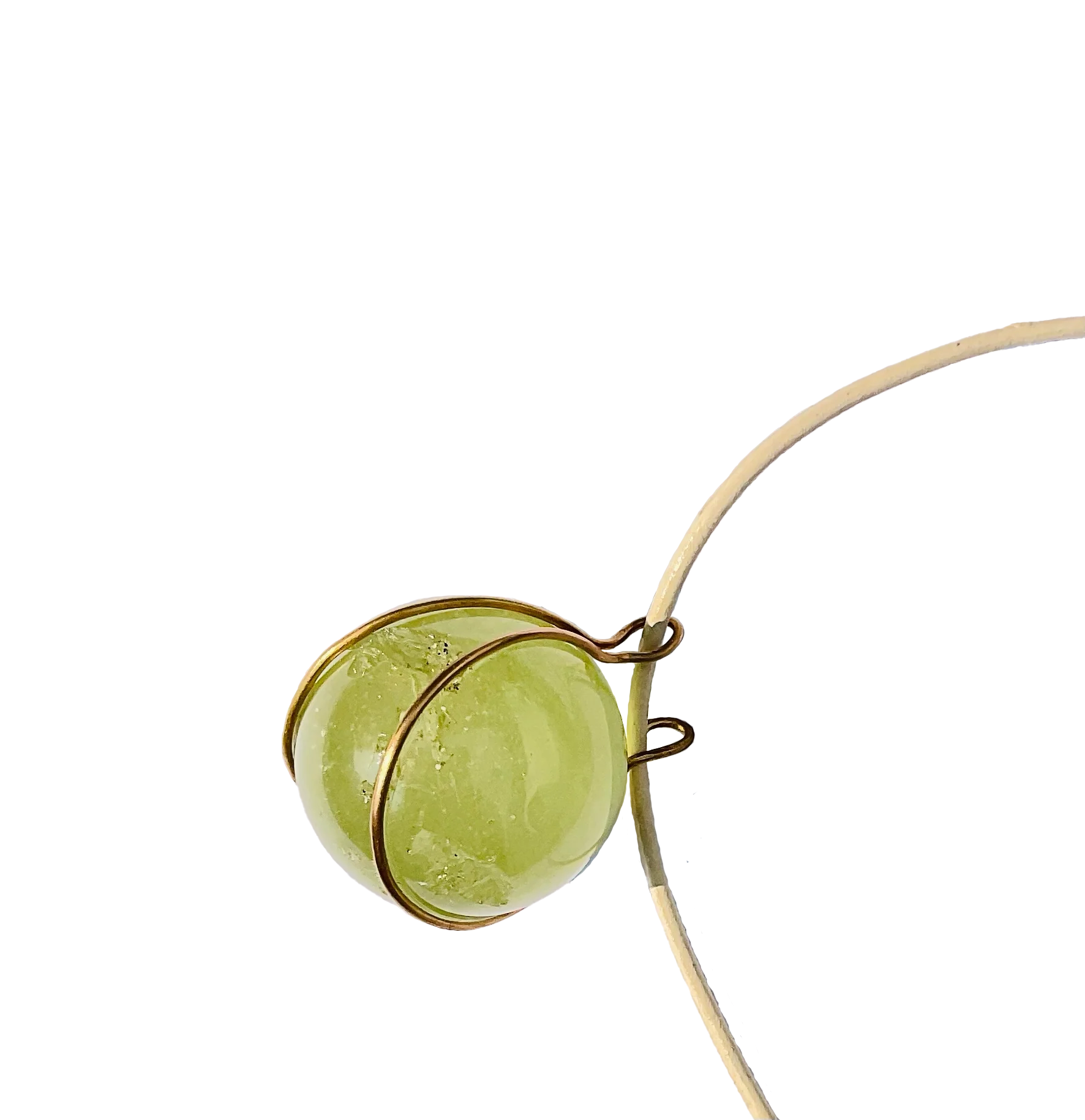 Yellow Beryl Sphere set in 18k gold measures 29mm.